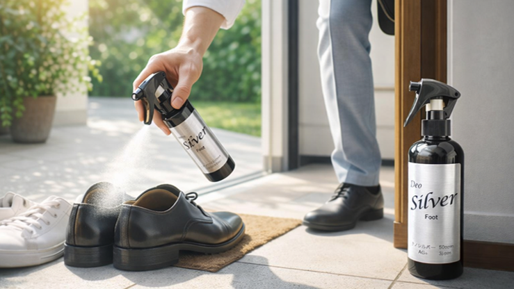 1プッシュで、靴の匂いが1日気にならない。外出先で靴を脱ぐ場面でいつも気になる足の匂い。Deo Silveがお悩みを解決。詰め替えれば持ち運びも。
